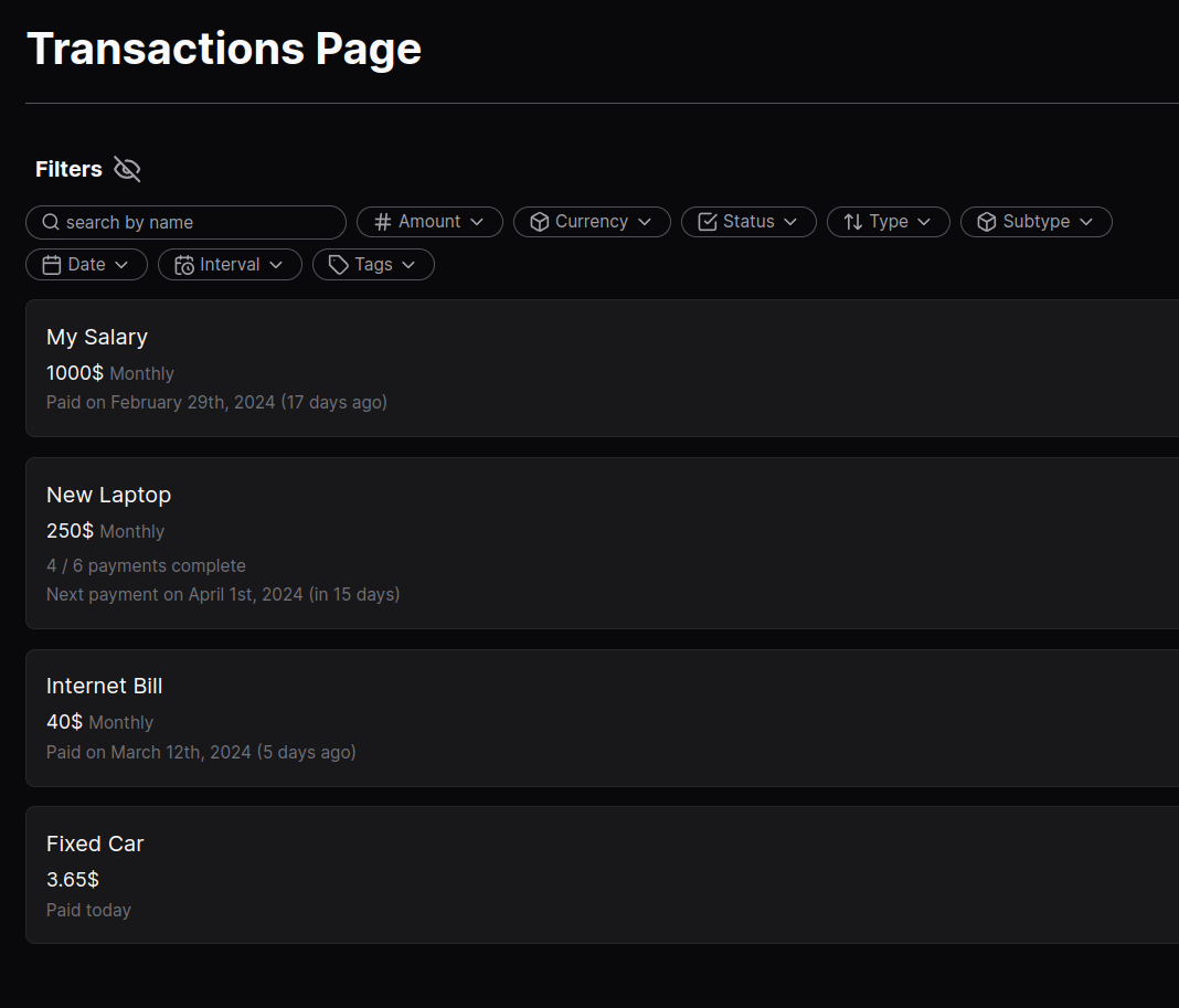 Use filters to sort and find your transactions quickly.